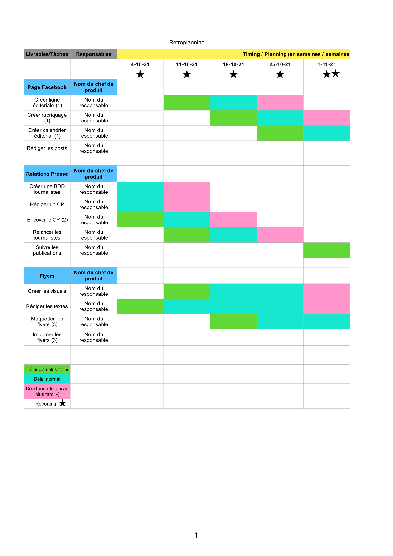 - Rédiger un planning des tâches